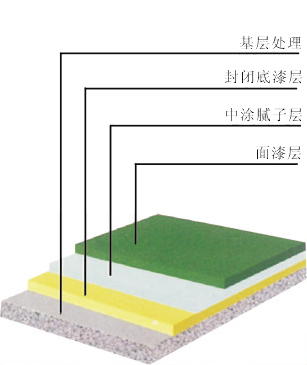 用環(huán)氧地坪中涂漆或環(huán)氧底漆調(diào)石英粉、雙飛粉批刮膩子層 | 環(huán)氧底漆、環(huán)氧中涂漆 |